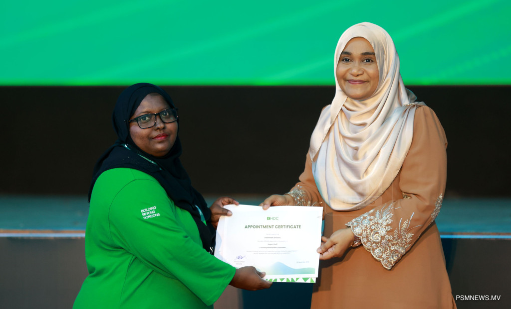 އެޗްޑީސީން ޚާއްސަ އެހީއަށް ބޭނުންވާ މީހުންނަށް ވަޒީފާގެ ފުރުޞަތު ފަހިކޮށްދިނުމުގެ ލިޔުން ހަވާލުކުރުމުގެ ރަސްމިއްޔާތުގެ ތެރެއިން / ފޮޓޯ: މުޙައްމަދު ވަޙީދު، ޕީއެސްއެމް ނިއުސް