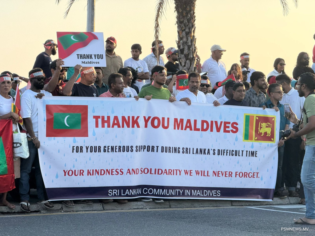 ދިވެހިން ލަންކާއަށްވި އެހީތެރިކަން ފާހަގަކޮށް އެކަމަށް ޝުކުރުއަދާކުރުމުގެ ގޮތުން ރާއްޖޭގައި އުޅޭ ލަންކާގެ ރައްޔިތުން ބޭއްވި އެއްވުމުގެ ތެރެއިން / ފޮޓޯ: ޕީއެސްއެމް ނިއުސް