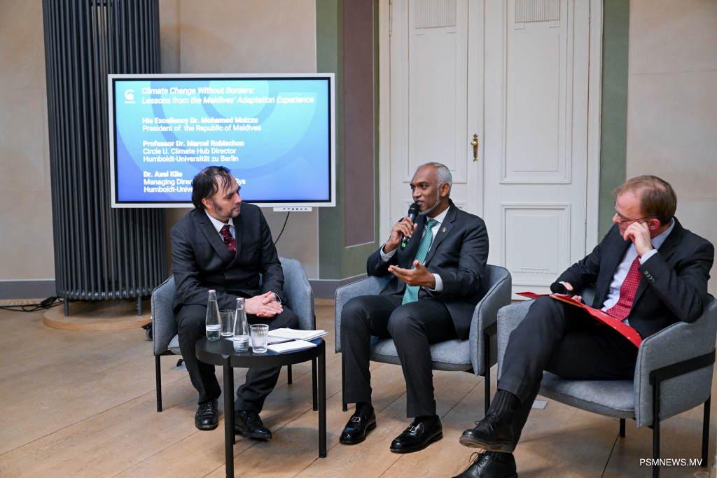 ސައިންސްގެ މައްޗަށް ބިނާވެފައިވާ ބައިނަލްއަގުވާމީ ގުޅުންތަކުގެ މައްޗަށް އަލިއަޅުއްވާލައްވަމުން، ބަރލިންގެ ހުމްބޯލްޑްޓް ޔުނިވަރސިޓީ ފަދަ މުއައްސަސާތަކަކީ ސައިންސާއި ސިޔާސަތުތައް އެކައްޗެއްގެ ގޮތުގައި އެކުލަވާލުމުގައި، ނާޒުކު ހާލަތްތަކުގައި ތިބި މީހުންގެ އަޑު އުފުލައިދިނުމުގައާއި، މުސްތަގުބަލުގެ މާހިރުންނާއި ލީޑަރުން ތަމްރީނުކުރުމުގައި މުހިންމު ދައުރެއް އަދާކުރާ ތަންތަންކަން ރައީސުލްޖުމްހޫރިއްޔާ ފާހަގަކުރެއްވިއެވެ. މޫސުމީ ގޮތުން އަންނަ ނޭދެވޭ ބަދަލުތަކަކީ ވަކި ބޯޑަރެއް ނެތް، ނުވަތަ ވަކި ސަރަހައްދީ އިމަކަށް ބެލުމެއް ނެތް ކަމަކަށް ވާއިރު، އެކަމާ ކުރިމަތިލުމަށް ބޭނުންވަނީ ހުރަސްތަކެއް ނެތް، ޢިލްމީ މަސައްކަތްތަކެއް ކަމަށާއި، ގައުމީ ފެންވަރުގެ ހަނި މަސްލަހަތުތަކާއި ކުރު މުއްދަތުގެ ފައިދާއަށްވުރެ ބޮޑަށް، ދުރު މުސްތަގުބަލަށް އަމާޒުކުރާ ހައްލުތަކަކަށް އެމަނިކުފާނު ގޮވާލެއްވިއެވެ.