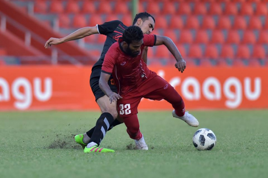 ޓީސީއާއި އީގަލްސް ވާދަކުރި މެޗުގެ ތެރެއިން: އެ މެޗު 1-0ގެ ނަތީޖާއަކުން ކާމިޔާބުކުރީ ޓީސީން --- ފޮޓޯ/ އެފްއޭއެމް