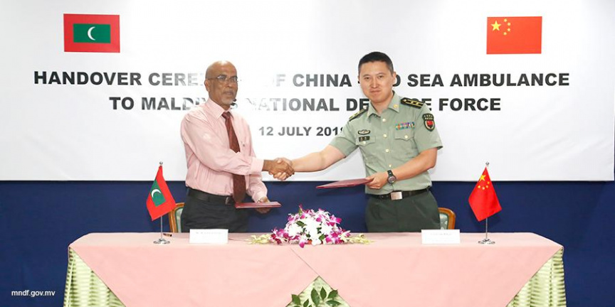 ޗައިނާ ސަރުކާރުން ސީ އެމްބިއުލެންސްއެއް ރާއްޖެއަށް ހަދިޔާކުރުމަށް ބޭއްވި ރަސްމިއްޔާތުގެ ތެރެއިން---ފޮޓޯ: އެމްއެންޑީއެފް