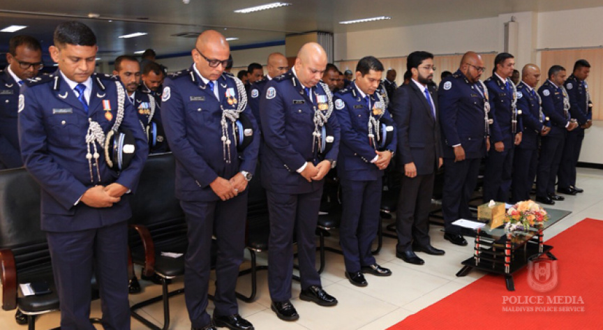 ފުލުހުންގެ މެމޯރިއަލްޑޭ ފާހަަގަ ކުރުމަށް މިއަދު ބޭއްވި ރަސްމިއްޔާތުގެ ތެރެއިން-- ފޮޓޯ: މޯލްޑިވްސް ޕޮލިސް ސާވިސް