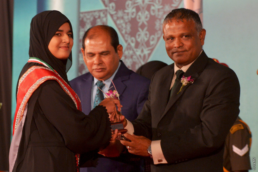ދަރުބާރުގޭ ރަންނަ ބަނޑޭރި މާލަމުގައި ރޭ ބޭއްވި އެ ސްކޫލުގެ މިދިޔަ އަހަރުގެ އަހަރީ އިނާމު ދިނުމުގެ ޖަލްސާގައި މި ތިން ދަރިވަރުންނަށް އެވޯޑް ހަވާލުުކޮށްދެއްވީ ޖަލްސާގެ ޝަރަފުވެރި މެހެމާން އޮނަރަބަލް ޑރ. އިބްރާހިމް ހަސަން އެވެ.
