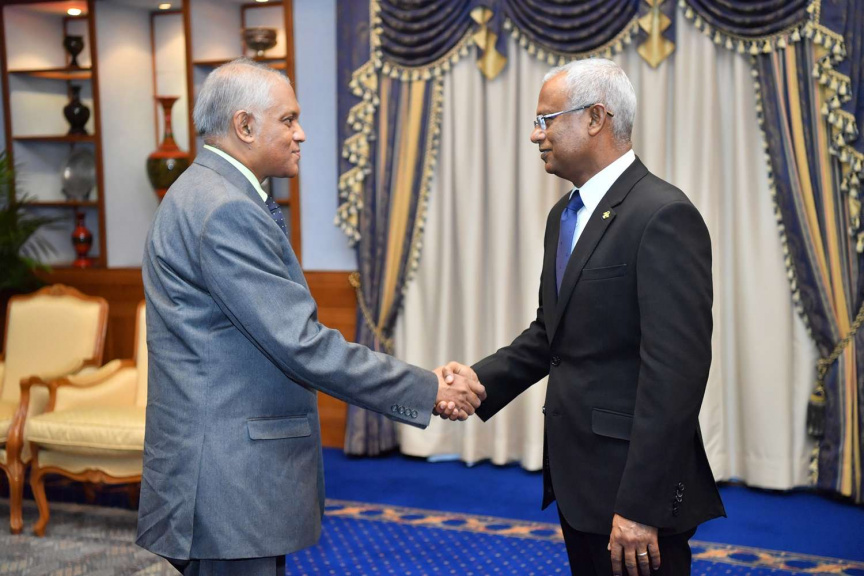 ރައީސް ސޯލިހު ހުވާކުރުމުގެ ދަރުބާރަށް ރާއްޖެ ވަޑައިގެންނެވި ޗަންދްރިކާ މިއަދު ރައީސް ސޯލިހުގެ އަރިހަށް ޒިޔާރަތް ކުރެއްވި އިރު، އެކަމަނާ ވަނީ ރައީސް ސޯލިހުއަށް މަރުހަބާ ވިދާޅުވެފައެވެ. އަދި އެ ދެ ބޭފުޅުން ވަނީ ރާއްޖެއާއި ލަންކާގެ ސިޔާސީ މަސްރަހު މިވަގުތު އޮތް ހާލަތާ ބެހޭ ގޮތުން ވާހަކަ ދައްކަވާފައެވެ.