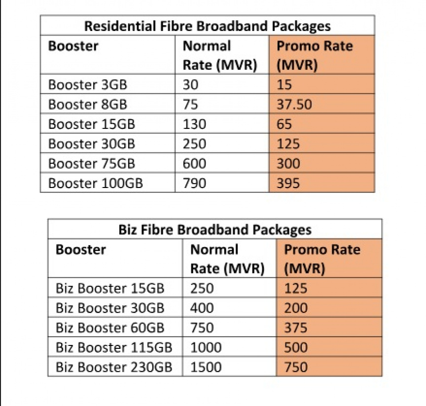 ދިރާގުން 50 ޕަސެންޓް އަގުހެޔޮކޮށް ފިކްސްޑް ބްރޯޑްބޭންޑް ބޫސްޓަރު ލިބޭ ޕްރޮމޯޝަނެއް ފަށައިފިއެވެ.