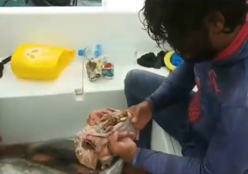 އެ މަސް އެ ހާލެއްގައި އޮތީ ކާނެ އެއްޗެއް ނުލިބިގެން ކަމަށް ބުނެ ޑިންގީގައި ތިބި ޝިރުހާންގެ ބޭބެ އާއި އެކުވެރިޔާ ސަމާސާ ކުރި އެވެ. އެކަމަކު، ރަނގަޅަށް ބަލައިލި އިރު މަހުގެ ބަނޑު އޮތީ ފުފިފަ އެވެ. އޭގެ ރޫފަ ނިކަން ރަނގަޅެވެ. ބަނޑު ފަޅާލައި ގޮހޮރު ބަލައިލި އިރު، ގޮހޮރުވެސް އޮތީ ފުއްޕާފަ އެވެ.