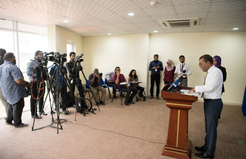 ނޫސްވެރިންގެ ބައްދަލުވުމުގައި ރައީސް ނަޝީދު ވާހަކަ ދައްކަވަނީ --- ފޮޓޯ/ މަޖިލިސް