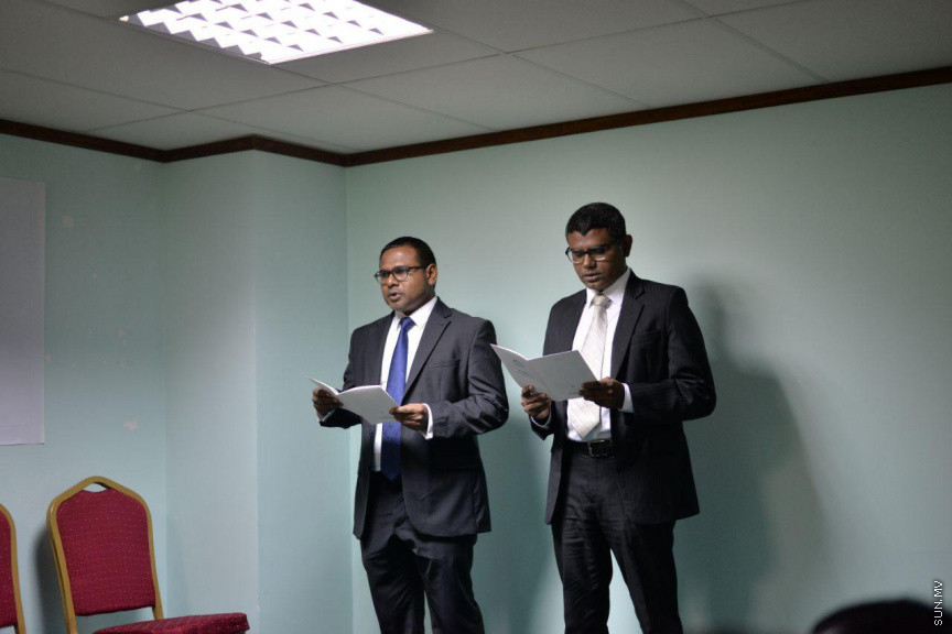 އާ ދެ ފަނޑިޔާރުންނަށް ފަނޑިޔާރުކަމުގެ ލިޔުން ހަވާލުކޮށްދެއްވީ ޖޭއެސްސީގެ ރައީސް އަދި ސުޕްރީމް ކޯޓުގެ ފަނޑިޔާރު އަބްދުﷲ އަރީފެވެ.