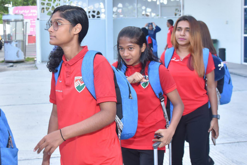 ގައުމީ އަންހެން ފުޓުބޯޅަ ޓީމުގެ ކުޅުންތެރިން ޓްރެއިނިންގް ކޭމްޕަށް ގަތަރަށް ފުރުމުގެ ކުރިން --- ފޮޓޯ// އެފްއޭއެމް