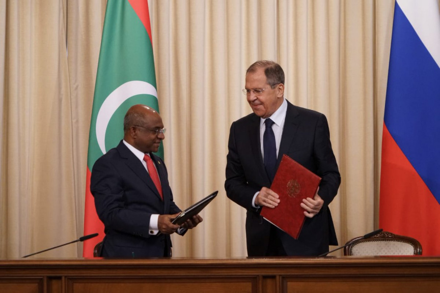 ރަޝިއާ - ރާއްޖެ އޮން އެރައިވަލް ވިސގެ އެއްބަސްވުމުގައި ސޮއިކުރުމަށް ބޭއްވި ރަސްމިއްޔާތުގެ ތެރެއިން---- ފޮޓޯ: ފޮރިން މިނިސްޓްރީ