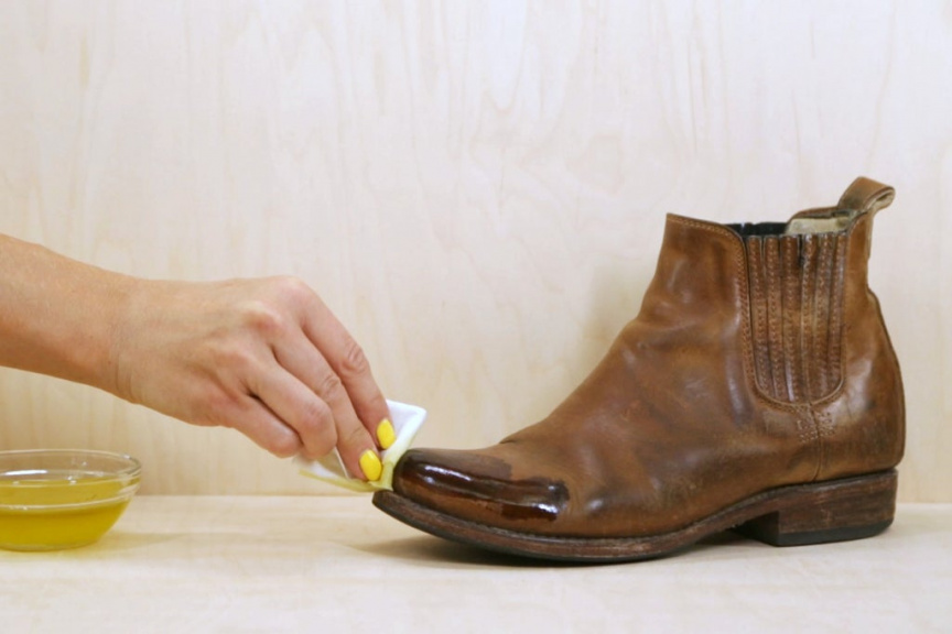 ދެ ސައި ސަމްސާ ލުނބޯ ހުތާއި، ތިން މޭޒުމަތީ ސަމްސަ އޮލިވް އޮއިލް އެއްކޮށްލުމަށްފަހު ލެދާ ބޫޓު ތަކުގައި ހާކާލުމުން ނިކަން ރީތިކޮށް އޮފް އަރާނެ އެވެ. ބޫޓު އެކަންޏެއް ނޫނެވެ. ވަކަރުން ހަދާފަިއ ހުރި އެކިކަހަލަ ފަރުނީޗަރު ތަކަށްވެސް މިއީހަމަ ބޭނުންކޮށްލުން ރަނގަޅު އެއްޗެކެވެ. ވަކަރު ފަރުނީޗަރު ތަކުގައި ހޭކުމަށްފަހު އިރުކޮޅެއްކޮށްލުމަށްފަހު ސާފު ފޮތިކޮޅަކުން ފުހެލާށެވެ.
