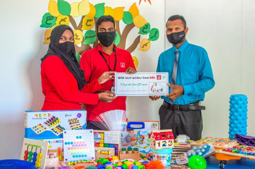 ބޭންކް އޮފް މޯލްޑިވްސްއިން ރާއްޖޭގެ 10 ސްކޫލެއްގައި ހިންގާ ސްޕެޝަލް އެޑިއުކޭޝަން ނީޑް (ސެން) ކްލާސްތަކުގައި ކުދިންނަށް ކިޔަވައިދިނުމަށް ބޭނުންވާ ތަކެތި ހަދިޔާކޮށްފި އެވެ.
