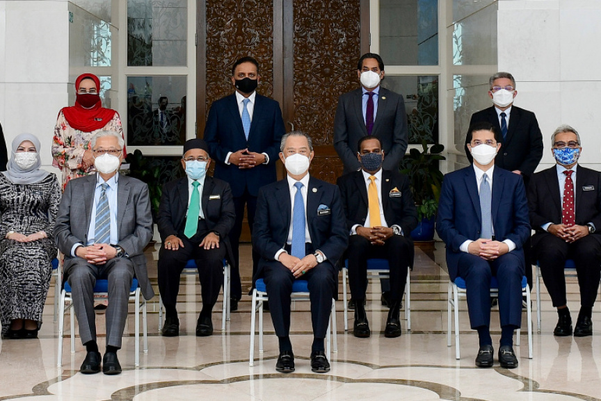މެލޭޝިއާގެ ބޮޑުވަޒީރު މުހްޔިއްދީން ޔާސީން އާއި ކެބިނެޓު -- ފޮޓޯ: އީޕީއޭ