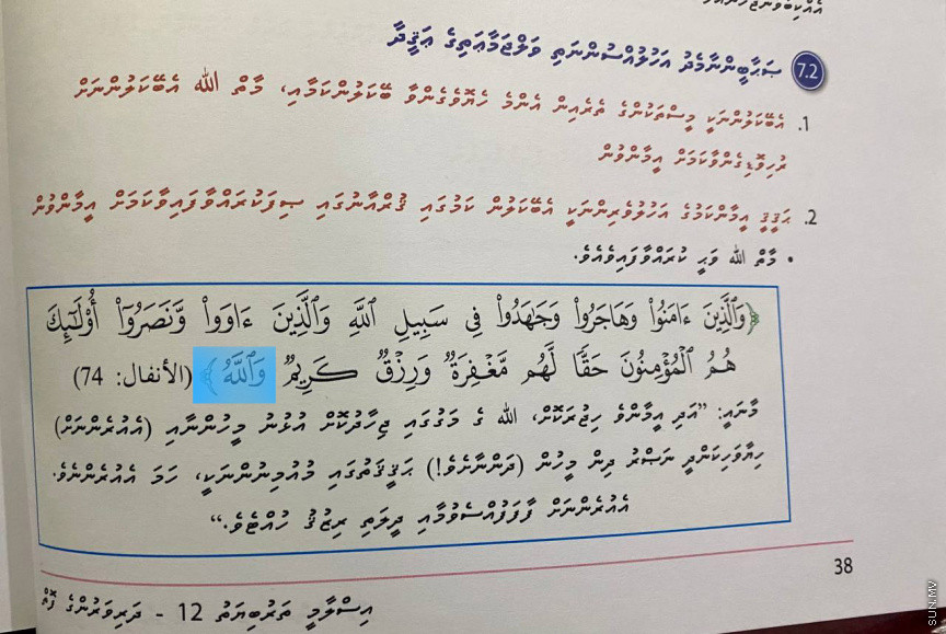 ގުރޭޑް 12ގެ އިސްލާމް ފޮތުގައި ވެސް ގުރުއާނުގެ އާޔަތެއް ނުބައިކޮށް އޮތްކަން ހާމަވެއްޖެއެވެ.