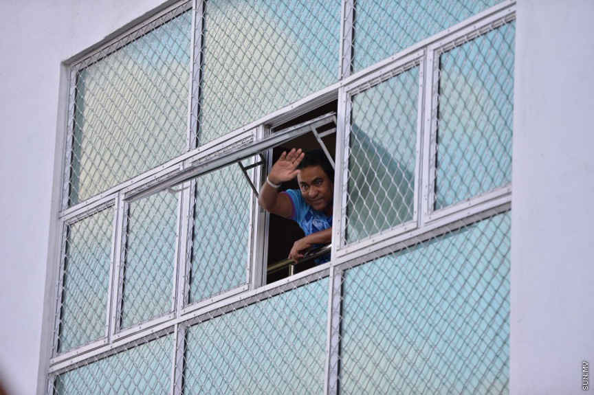 ރައީސް ޔާމީނުވަނީ އެމަނިކުފާނު ދިރިއުޅުއްވާ ގޭގެ ކުޑަދޮރަކުން އިހުތިޖާޖުގެ ބައިވެރީންނަށް ފެނިލައްވައި ހަނާއަޅުއްވާފައެވެ. އަދި އިހުތިޖާޖުގެ ބައިވެރިން ދިން ޕީޕީއެމްގެ ދިދައަކާއި ގައުމީ ދިދައެއް ވިހުރާލައްވާފައެވެ.
