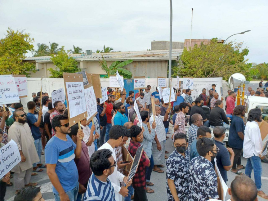 ދުވާފަރުގައި މިއަދު ބޭއްވި ހިމޭން އިހުތިޖާޖުގެ ބައިވެރިއަކު "ސަން"އާ ވާހަކަ ދައްކަމުން ބުނީ ކީރިތި ރަސޫލާއަށް ފުރައްސާރަ ކުރުމާއި ދީނަށް ހަޖޫ ޖެހުން ފަދަ ހުތުރުކަން ބޮޑު ޢަމަލުތައް ހިންގުމަކީ އެރަށުގެ ރައްޔިތުންގެ ލެޔާ ކުޅުން ފަދަ ބޮޑު މައްސަލައެއް ކަމަށެވެ.