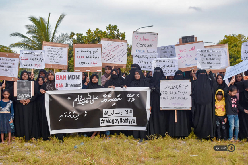 މާތްﷲ އާއި ކީރިތި ރަސޫލާ މުޙައްމަދުން ސައްލަﷲ އަލައިހި ވަސައްލަމްއާއި އެކަލޭގެފާނުގެ ސަހާބީންނަށް ބަދުބަސް ބުނާ މީހުން ރާއްޖޭގައި ގިނަ ވެއްޖެ ކަމަށް ބުނެ އެކަމާ ދެކޮޅަށް މިއަދު ރ. ދުވާފަރުގައި ހިމޭން އިހުތިޖާޖެއް ކޮށްފިއެވެ.