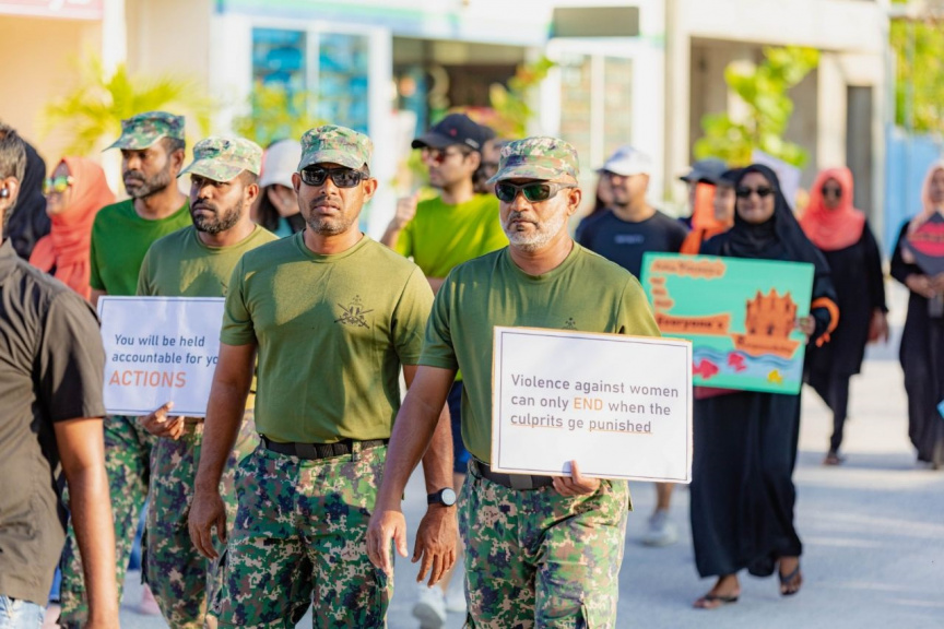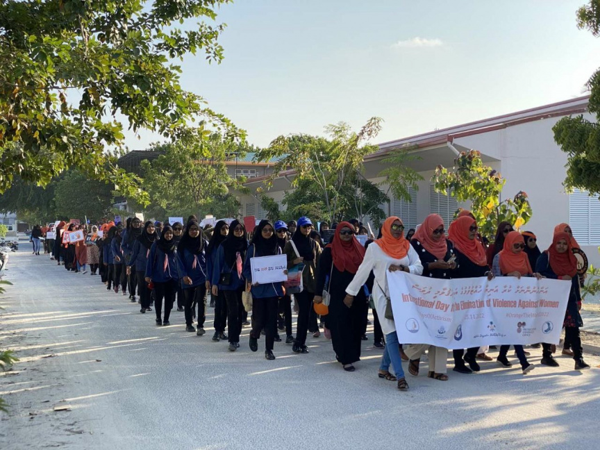 އަންހެނުންނަށް ކުރާ އަނިޔާއާއި ދެކޮޅަށް ކުޅުދުއްފުށީގައި މިއަދު ބޭއްވި ހިނގާލުމުގެ ތެރެއިން -- ފޮޓޯ/ ހޯޕް ފޯ ވިމެން