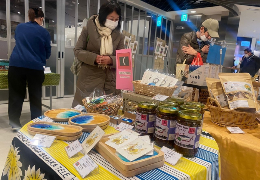 އޯތެންޓިކް މޯލްޑިވްސްގެ އުފެއްދުންތައް ޖަޕާން މާކެޓަށް ތައާރަފްކުރުމަށް ބޭއްވި ރަސްމިއްޔާތުގައި ދައްކާލުމަށް ބަހައްޓާފައިހުރި ދިވެހި އުފެއްދުންތަކެއް--- ފޮޓޯ/ޖަޕާނުގައި ހުންނަ ދިވެހި އެމްބަސީ