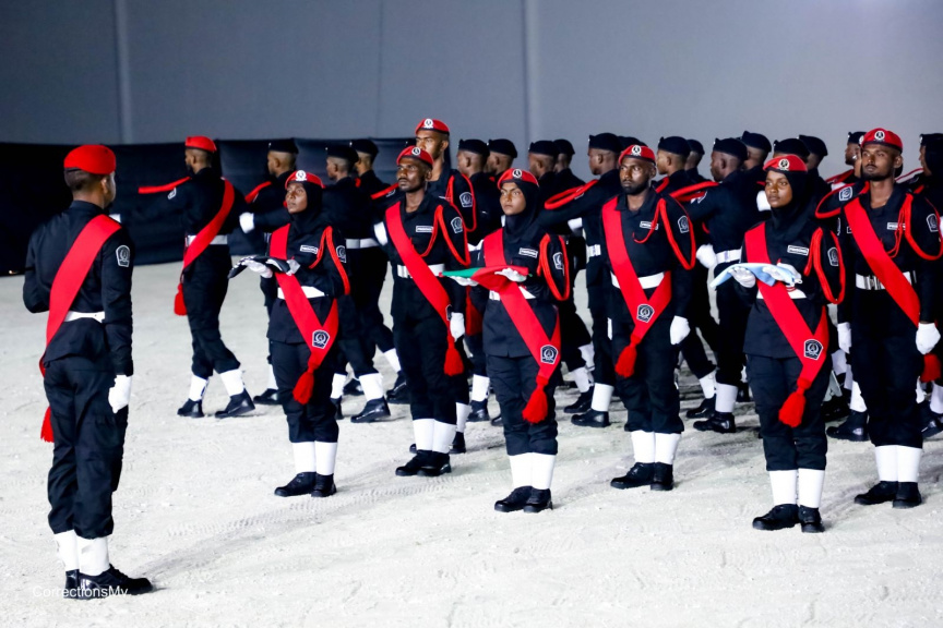 ޕްރިޒަން އޮފިސަރުންގެ އަސާސީ ތަމްރީން ޕްރޮގްރާމްގެ 26 ވަނަ ބެޗްގެ ދަސްވެނިވުމުގެ ރަސްމިއްޔާތުގެ ތެރެއިން -- ފޮޓޯ/ ކަރެކްޝަން