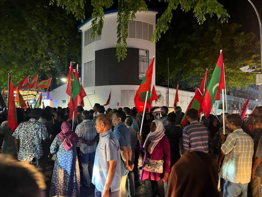 އިދިކޮޅު ލީޑަރު ރައީސް އަބްދުﷲ ޔާމީން ޖަލަށް ލުމަށް ހުކުމް ކުރުމާ ގުޅިގެން އެމަނިކުފާނު މިނިވަން ކުރުމަށް ގޮވާލައި ކުރާ މުޒާހަރާ--- ފޮޓޯ/ ޕީޕީއެމް