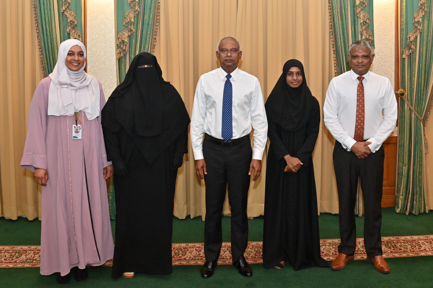 ދެހާސް އެކާވީސް ވަނަ އަހަރު ޝަހާދާ ސާނަވިއްޔާ ނިންމައި، ރައީސުލްޖުމްހޫރިއްޔާގެ ސްކޮލާޝިޕް ހާސިލްކުރި ދަރިވަރު ގދ. ތިނަދޫ، މާކޮޅު، ފާތިމަތު ހުޔާމް ޚަލީލާ، ރައީސުލްޖުމްހޫރިއްޔާ އިބްރާހީމް މުޙައްމަދު ޞާލިޙް މިއަދު ބައްދަލުކުރައްވައި ހިތްވަރު ދެއްވައިފިއެވެ.