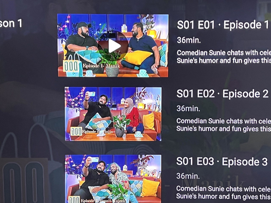 އެސްއެސްނެޓްގެ ވީޑިއޯ އޮން ޑިމާންޑު ޚިދުމަތް، ސަން ސިނަމާގައި ހިމެނޭނީ ދިވެހި ފިލްމުތަކާއި ޑްރާމާތަކާއި ޕްރޮގްރާމްތަކާއި އެފަދަ އަމިއްލަ އުފެއްދުންތައް ކަމަށެވެ.