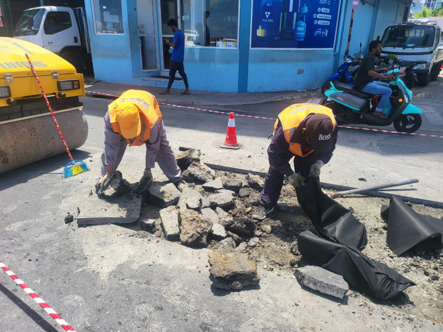 ބޮޑުތަކުރުފާނު މަގު މަރާމާތުކުރުމުގެ މަސައްކަތުގެ ތެރެއިން --- ފޮޓޯ/ މާލޭ ސިޓީ ކައުންސިލް