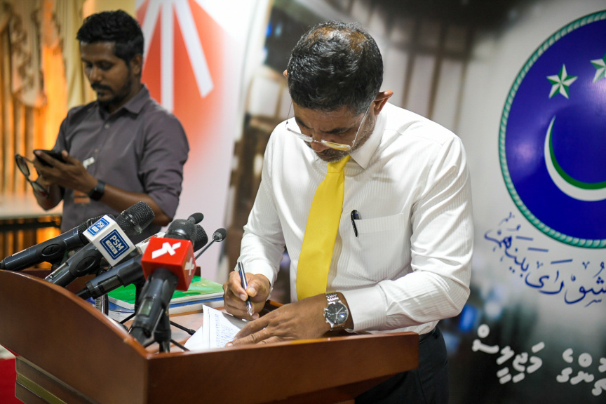 ރައީސް ނަޝީދުގެ އިތުބާރު ނެތް ކަމުގެ މައްސަލަ ހުށަހަޅަން، އެމްޑީއޭގެ ރައީސް އަދި ދ. މީދޫ ދާއިރާގެ މެންބަރު އަހުމަދު ސިޔާމް ސޮއި ކުރައްވަނީ --
