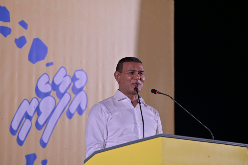 އެމްޑީއޭގެ ރައީސް އަހްމަދު ސިޔާމް މުޙައްމަދު ފުވައްމުލަކުގައި ރައީސްގެ ކެމްޕޭން ޖަލްސާގައި ވާހަކަފުޅުދައްކަވަނީ -- ފޮޓޯ/ އެމްޑީޕީ