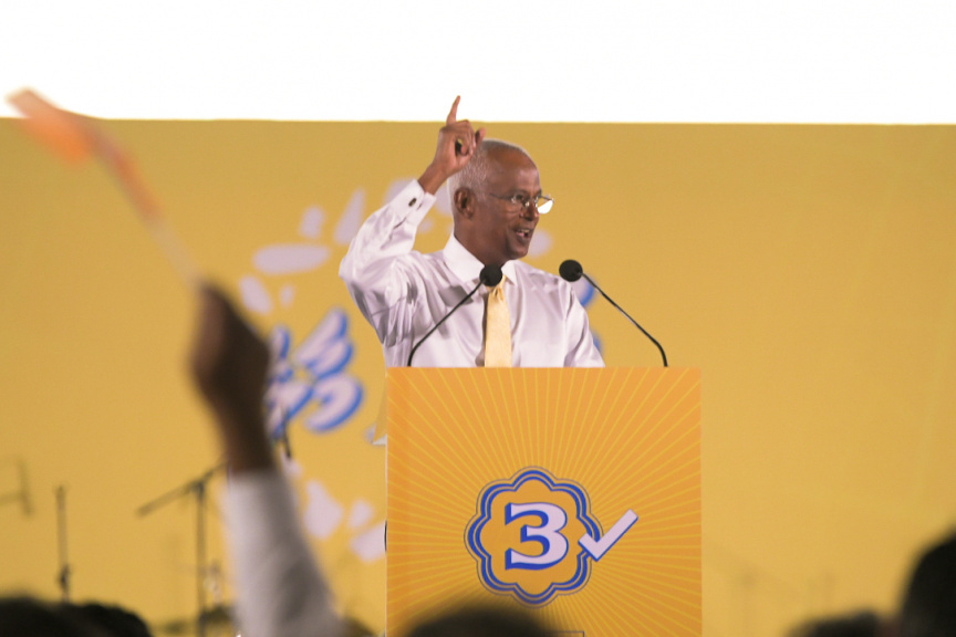 "ރައްޔިތުން ތިބީ ވަކި ގޮތަކަށް ނިންމައިގެން. އެއީ މިރޭ ތިބޭފުޅުން ވެސް ތިއްބެވި ގޮތް. އެއް ބުރުން ނޫން ގޮތެއް ނެތް،" ރައީސް ވިދާޅުވިއެވެ.