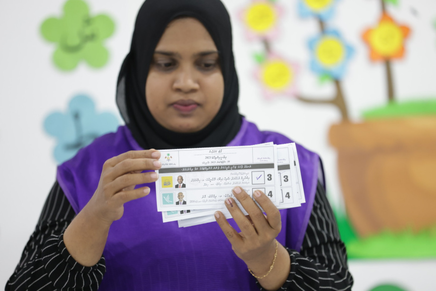 އިއްޔެ ބޭއްވި ރިޔާސީ އިންތިޚާބުގެ ދެވަނަ ބުރުގެ ވޯޓު ގުމުގެ ތެރެއިން -- ސަން ފޮޓޯ/ އިބްރާހިމް ޝަމްވީލް