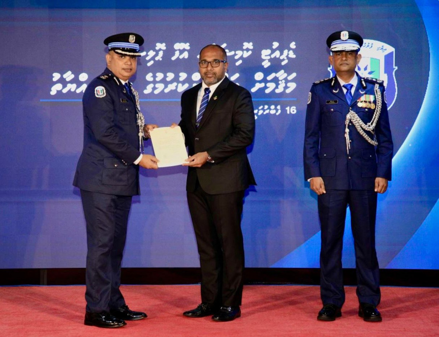 ފުލުހުންގެ ޑެޕިއުޓީ ކޮމިޝަނަރު ކަމަށް ދެ ބޭފުޅަކު އައްޔަންކުރައްވަން ބޭއްވި ރަސްމިއްޔާތުގެ ތެރެއިން -- ފޮޓޯ/ ފުލުހުން