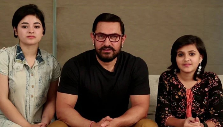 "ޑަންގަލް"ގައި އާމިރު ޚާންގެ ދެ ކުދިންގެ ރޯލް ކުޅުނު ސުހާނީއާއި ޒާރާ ވަސީމް އާމިރު ޚާންއާ އެކު-- ފޮޓޯ/ އިންޓަނެޓް