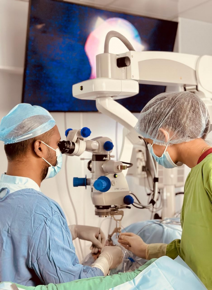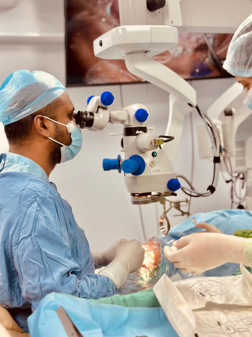 މީގެ އިތުރުން، އެ ހޮސްޕިޓަލުން ބުނީ ޑރ. އައްޒާމްގެ ތަޖުރިބާއާއި ބެއްލެވުމުގެ ދަށުން އައިކެއާގެ ސާޖަރީ ޓީމުން ފެކޯއިމަލްސިފިކޭޝަން އެންޑް ފޯލްޑަބަލް ލެންސް އިމްޕްލާންޓޭޝަންއާއި ޓްރާންސް-ޕާސް ޕްލާނާ ވިޓްރެކްޓޮމީ، ފްލުއިޑް އެއާ އެކްސްޗޭންޖް، އެންޑޯ-ލޭޒާ ޓްރީޓްމެންޓް އަދި ސިލިކަން އޮއިލް އިންޖެކްޝަން ހަދާފައިވާ ކަމަށެވެ.