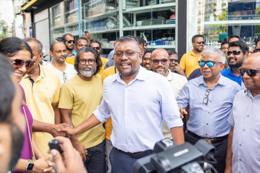 މިއަދު އޭނާ ހާޒިރުވެފައިވާއިރު، ގިނަ އަދަދެއްގެ އެމްޑީޕީ ސަޕޯޓަރުން ހެންވޭރު ދަނޑު ކައިރި ހުންނަ ފުލުހުންގެ އިމާރާތް ކައިރިއަށް އެއްވެ ތިއްބެވެ.
