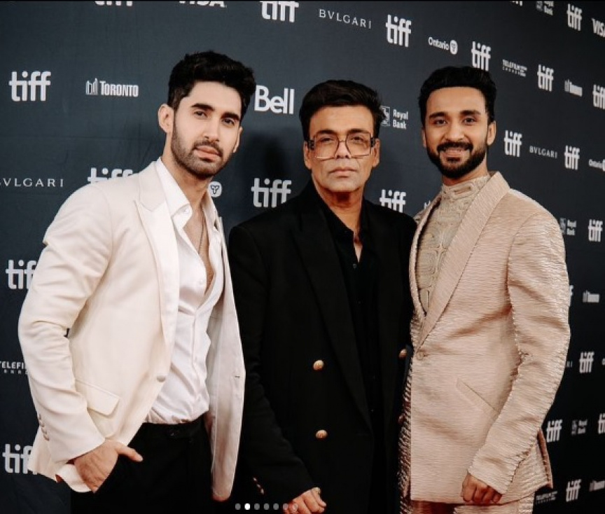 ޕްރޮޑިއުސަރު ކަރަން ޖޯހަރު ފިލްމު "ކިލް"ގެ ދެ ތަރިންނާ އެކު--ފޮޓޯ/ބޮލީވުޑްހަންގާމާ