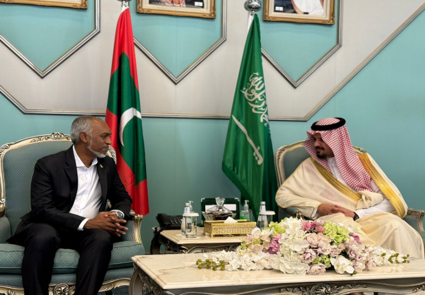 ރައީސް ޑރ. މުއިއްޒާއި މަދީނާ ސަރަޙައްދުގެ ގަވަރުނަރު ޞާޙިބުއްސުމުއްވުލް މަލަކީ އަލްއަމީރް ސަލްމާން ބިން ސުލްޠާން ބިން ޢަބްދުލްޢަޒީޒް އާލް ސުޢޫދު -- ފޮޓޯ/ ރައީސް އޮފީސް