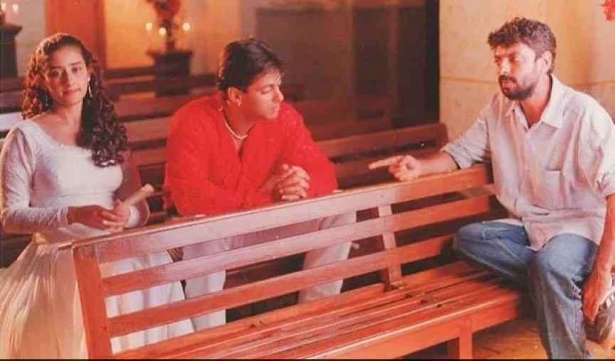 ފިލްމު 'ޚާމޯޝީ'ގެ ސެޓުގައި ސަންޖޭ އާއި ސަލްމާން އަދި ބަތަލާ މަނީޝާ ކޮއިރަލާ--ފޮޓޯ/އެންޑީޓީވީ