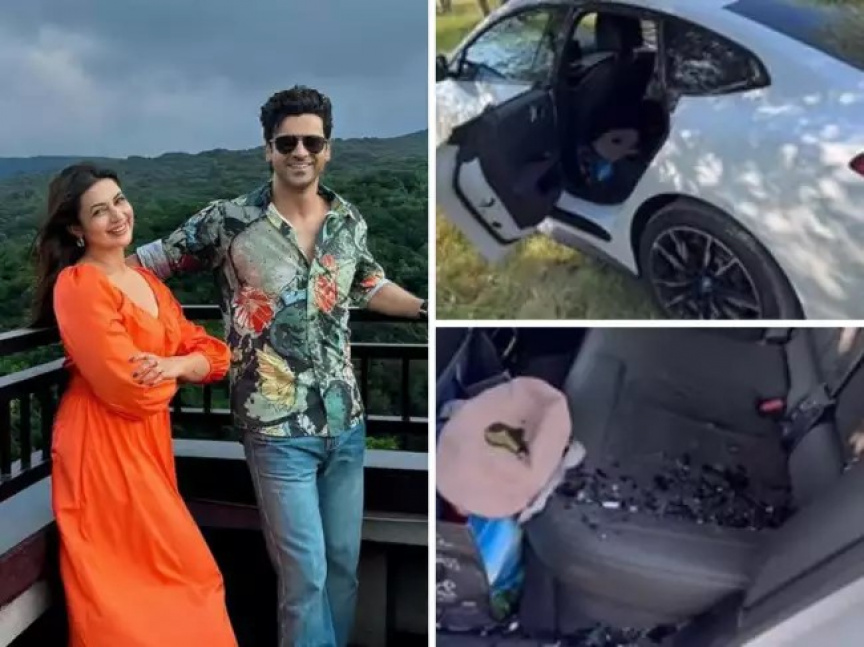 ވިވެކް އާއި ދިވްޔަންކާ ދަތުރުކުރި ކާރުގެ ބިއްލޫރި ތަޅާލާފައިވާ މަންޒަރު ދައްކުވައިދޭ ފޮޓޯތަކެއް--ފޮޓޯ/ޕިންކްވިލާ