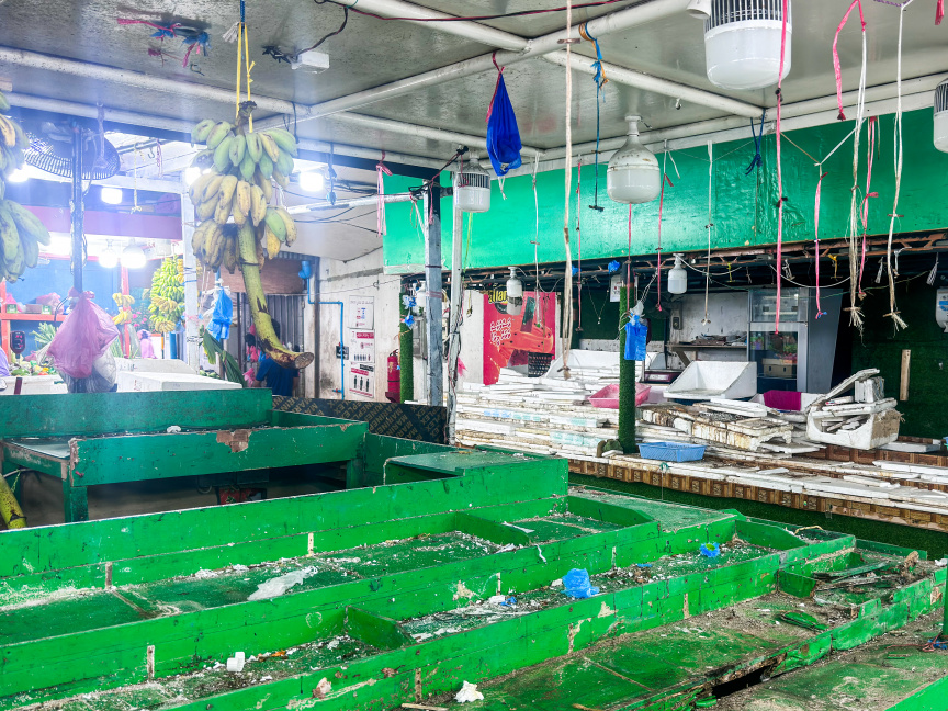 އަމީނީމަގުގައި ހުންނަ މާރުކޭޓު ފަޅުވެފައި: ބިދޭސީން މާރުކޭޓު ހިންގުމަކީ މަނާ ކަމެއް -- ސަން ފޮޓޯ/ މޫސާ ނަދީމް