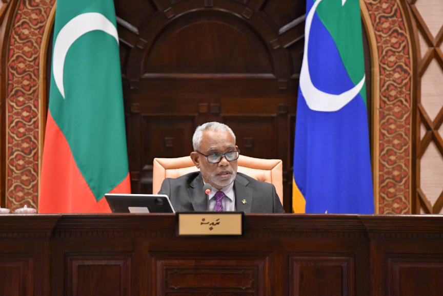 މިއަދު ކުރިއަށް ދިޔަ 20 ވަނަ ރައްޔިތުންގެ މަޖިލީހުގެ 17 ވަނަ ޖަލްސާގައި މަޖިލީހުގެ ރައީސް އަބްދުއްރަހީމް އަބްދުﷲ -- ފޮޓޯ/ މަޖިލިސް