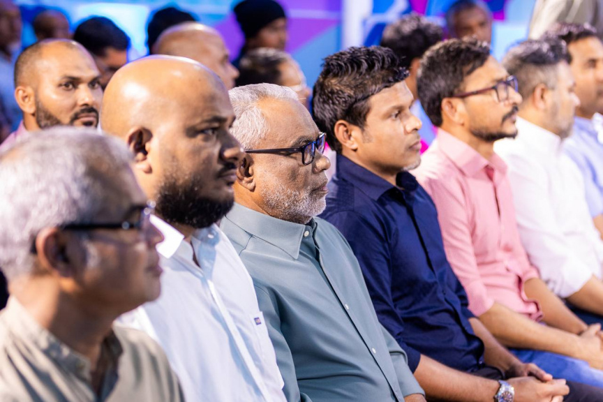 ޕީއެންސީ ހަރުގޭގައި އޮތް ޖަގަހަ ޖަލްސާގައި ޕީއެންސީގެ ޗެއާޕާސަން އަބްދުއްރަހީމް އަބްދުﷲ -- ސަން ފޮޓޯ/ މޫސާ ނަދީމް