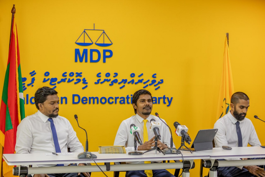 އެމްޑީޕީން މިއަދު ބޭއްވި ނޫސްވެރިންގެ ބައްދަލުވުން: މޫކޭ ވިދާޅުވީ ތަހުގީގުތަކުން ވައްކަމެއް ކޮށްފައި ނެތްކަން އެނގުމުން އާ މައްސަލަތައް އުފަންކުރުވަނީ ކަމަށް — ސަން ފޮޓޯ/ އަމަން ލަތީފް