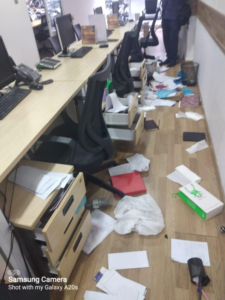 ފޭސްބުކްގައި ފިރާގު ހިއްސާކުރެއްވި ފޮޓޯތަކުން ފެންނަ ގޮތުގައި އޮފީސް ފަޅައިލުމަށް ފަހު، އެ ތަނުގައި ހުރި ލިޔެކިޔުމާ ބައެއް ތަކެތި ވަނީ އުކާލައިފައެވެ. އެ ތަނަށް ވަދެފައިވަނީ ތަޅު ހަލާކުކޮށްލައިގެންކަން ފޮޓޯތަކުން އެނގެއެވެ.