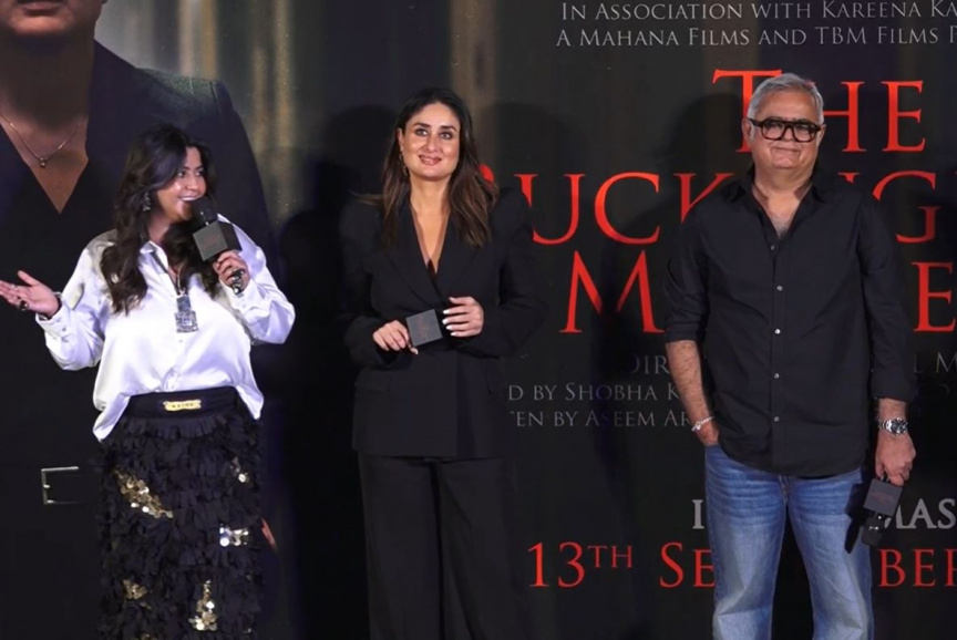 ފިލްމު "ދަ ބަކިންގްހަމް މާޑަސް"ގެ ޓްރެއިލާ ރިލީޒްކުރި އިވެންޓްގައި ޑައިރެކްޓަރު ހަންސަލް މެހެތާ އަދި ޕްރޮޑިއުސަރު އެކްތާ ކަޕޫރު ކަރީނާ ކަޕޫރާއެކު--ފޮޓޯ/ޕިންކްވިލާ