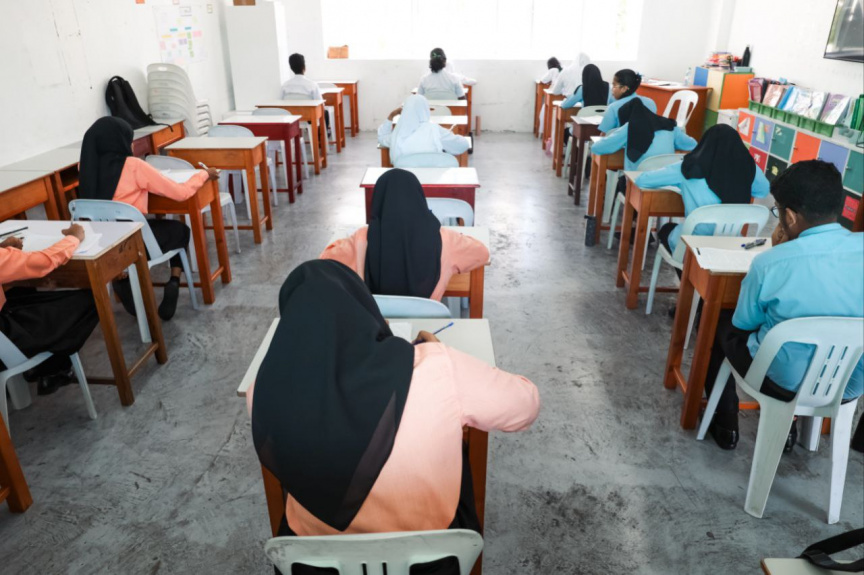 މަޒުމޫނު ލިޔުމުގެ ގައުމީ މުބާރާތުގައި ދަރިވަރެއް މަޒުމޫނު ލިޔަނީ: ސަތޭކައަށް ވުރެ ގިނަ ސުކޫލުތަކުން ބައިވެރިވި، ދިވެހި ބަހުގެ އެކެޑަމީގެ ގައުމީ ތިން މުބާރާތް ފަށައިފި ---- ސަން ފޮޓޯ/ ނާއިޝް ނާހިދު
