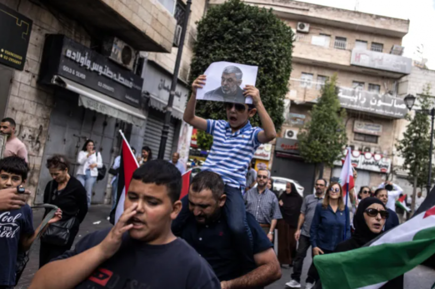 ރާމަﷲގައި ކުޑަކުއްޖަކު ސިންވާރުގެ ފޮޓޯއެއް ހިފައިގެން: ސިންވާރު އަވަހާރުކޮށްލުމުން ގިނަ ބަޔަކު އަންނަނީ ހިތާމަ ފާޅުކުރަމުން -- ފޮޓޯ/ އޭއެފްޕީ