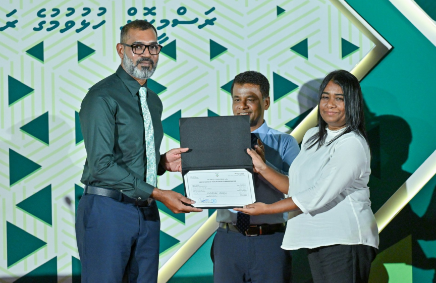 15 ނޮވެމްބަރު 2024: ދަރުމަވަންތަ ހޮސްޕިޓަލަށް ޓާޝަރީ ފެންވަރުގައި ހިންގުމުގެ އޮޕަރޭޓިން ލައިސެންސް ހަވާލުކުރުން -- ފޮޓޯ: ރައީސް އޮފީސް