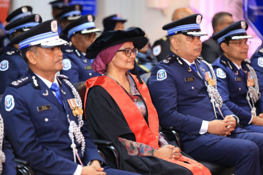ނެޝަނަލް ކޮލެޖް އޮޕް ޕޮލިސިން އެންޑް ލޯ އެންފޯސްމަންޓުން ހިންގި ބައެއް ކޯސްތައް ނިންމި ދަރިވަރުންގެ ދަސްވެނިވުމަށް ރޭ ބޭއްވި ރަސްމިއްޔާތުގައި މިނިސްޓަރު މާރިޔާ ބައިވެރިވެވަޑައިގަންނަވަނީ -- ފޮޓޯ/ ޕޮލިސް